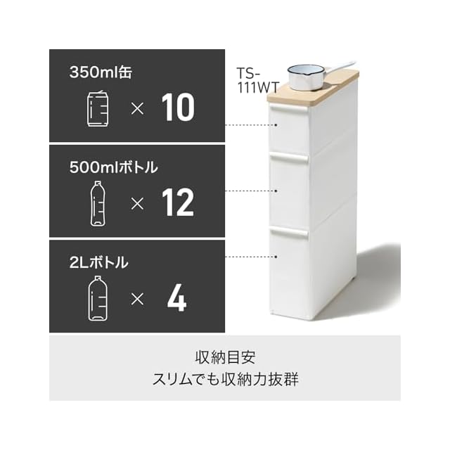 ライクイット (like-it) キッチン収納 耐熱木天板 ストッカー スリム 約幅18.7x奥46.5x高82.3cm オールホワイト 日本製 TS-111LWT 幅17cm デットスペース収納 すき間を活用 木製天板 耐熱150℃
