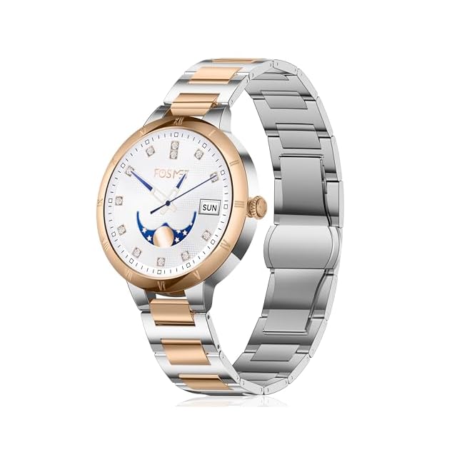 FOSMET W1 スマートウォッチ レディース 小さめ 睡眠管理 丸型 常時表示 iphone アンドロイド対応 AMOLEDディスプレイ サファイアガラス搭載 アプリのGPS連動可能 運動の自動検知機能 IP68防水 Smart Watch 着信 通知や通話機能 文字盤設定 天気予報 歩数計 ライト アラーム TELEC認証取得済(金属ベルト)