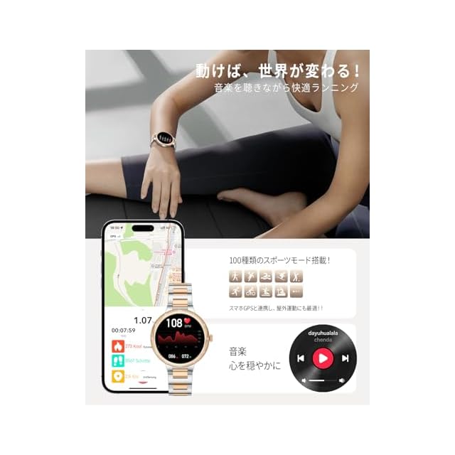 【100種以上の運動モード×GPS連動×IP68防水で、アウトドアでも大活躍】このスマートウォッチ レディース 防水はIP68防水仕様で、雨の日や手洗いのときに外す必要がなく、ランニングやウォーキングの際も安心して装着できます。100種類以上のスポーツモードを搭載し、ランニング・サイクリングなどの活動におけるステップ数やカロリーや運動時間などのアクティビティも詳細に記録し、運動習慣の管理をサポートします。さらに、専用アプリ「Fosmet Fit」と連携すれば、スマートウォッチからGPSルートや移動距離も正確に確認可能(※本体にGPSは非搭載)。また、新たに運動の自動検知機能を搭載しており、運動中を感知すると、ウォッチがリマインドしてくれます。ワンタップで運動を開始できます。さらに、わずか35gの超軽量設計で、運動中のベストのパートナーです。