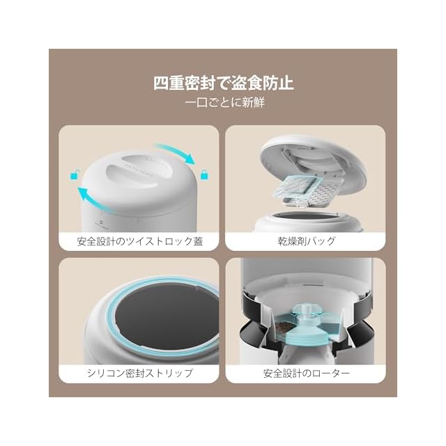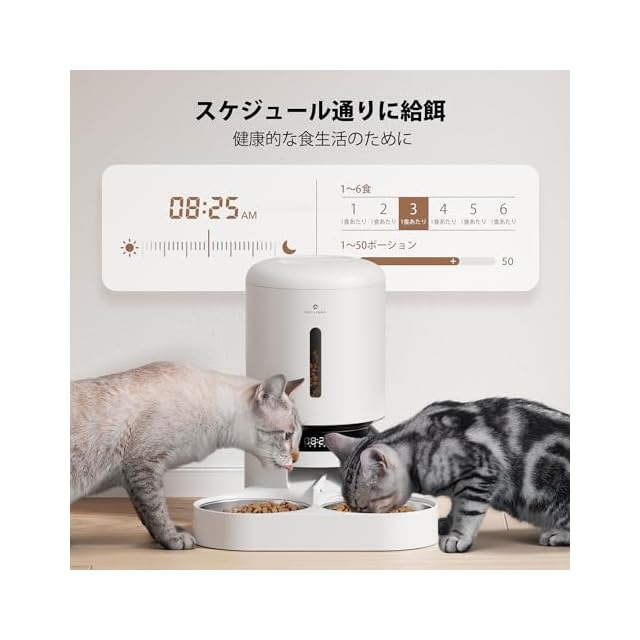 商品名:PETLIBRO 自動給餌器 猫 多頭飼いに向け 5L大容量 1日6食 1食0-50分量設定可能 10秒録音 2個のステンレス製トレイ付き猫 中小型犬用 自動餌やり機 蓋ロック 鮮度を保つ 給餌器 タイマー式 2WAY給電 赤線センサー 日本語対応説明書付き