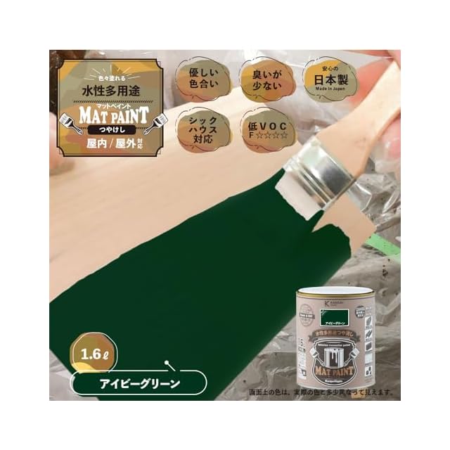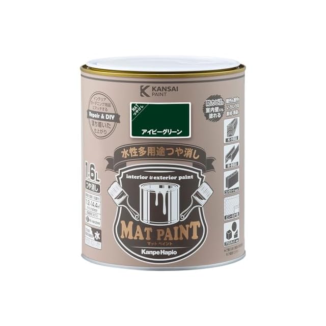商品名:カンペハピオ ペンキ 塗料 水性 つやけし 多用途 マットペイント アイビーグリーン 1.6L 日本製 00347651971016