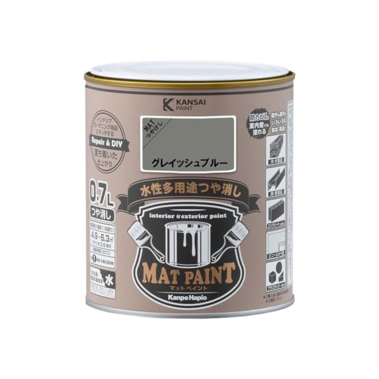 商品名:カンペハピオ ペンキ 塗料 水性 つやけし 多用途 マットペイント グレイッシュブルー 0.7L 日本製 00347651961007