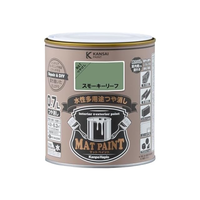 商品名:カンペハピオ ペンキ 塗料 水性 つやけし 多用途 マットペイント スモーキーリーフ 0.7L 日本製 00347652461007