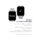 【常時表示AMOLEDディスプレイ。どんな時でもサッと時間を確認】常時表示機能が搭載になりました。常時表示の表示方法は2つ、アナログとデジタル表示。アナログデザインが好きな方はアナログを、正確な分数まで確認したい方はデジタルを。常時表示にしたい時間帯も設定可能になりました。日中は常時表示をオンにすることでどの体勢からもですぐに時間が可能に。夜中は表示をオフにすることで穏やかな睡眠を。常時表示機能を搭載するだけではなく、その先の用途に拘りました。ディスプレイはハイランクのスマートウォッチに搭載されているAMOLEDディスプレイ。画面をずっと見ていたくなる感覚。お気に入りの写真を待ち受けにして楽しもう。