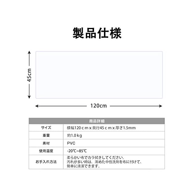 汚れとキズ防止:優れた耐水性でキッチン作業を残した油汚れやこぼれ、スッキリ拭き取ることができます。また、静電気防止の特性で、埃がつきにくく掃除が楽々。
