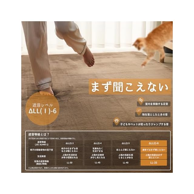 【遮音レベルΔLL(Ⅰ)-6】優れた遮音性能を持つカーペットで、子供やペットがカーペット上で走り跳ねても、ほとんどの音を軽減し、静かでリラックスした生活環境を提供します!