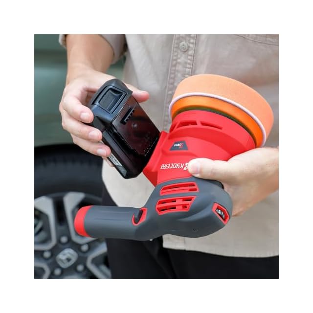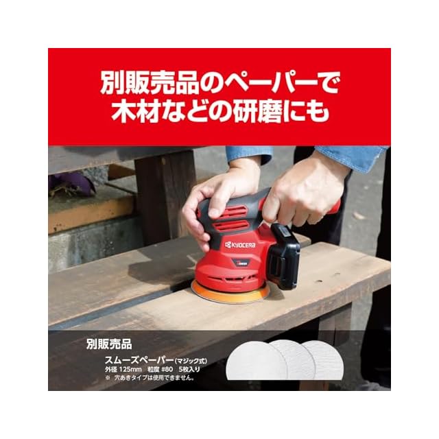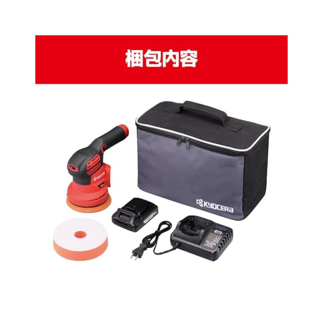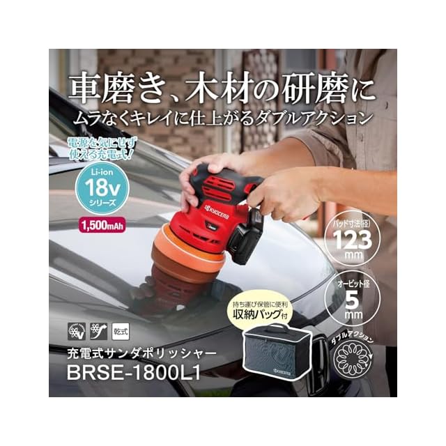 商品名:京セラ(Kyocera) 旧リョービ 充電式サンダポリッシャー BRSE-1800L1 602600A リチウムイオン18V電池1個・充電器・収納バック付 【車の塗装面の磨き・艶出し、ヘッドライトのくすみや黄ばみの除去に最適】 オービット径5mmの高い研磨力 スポンジ等を装着したまま自立可能 作業しながらスピード調節可 ソフトスタート付 安全機構搭載