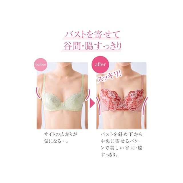 バストを美しく見せる3/4カップパターンと、取り外し可能なパッドでボリューム調整が可能です。