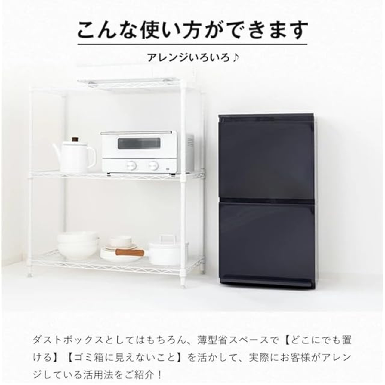 商品名:アスベル フタ付きゴミ箱 リビング 40L ペダル2段ワイド 丸洗い可 グレー 奥行スリム A6887