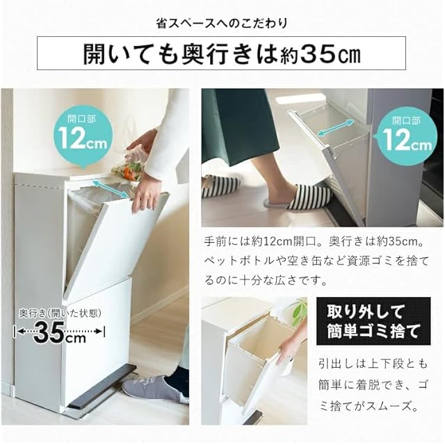 商品名:アスベル フタ付きゴミ箱 ペダル2段ワイド ニオイ漏れ防ぐ 40L 白 衛生的 A6604