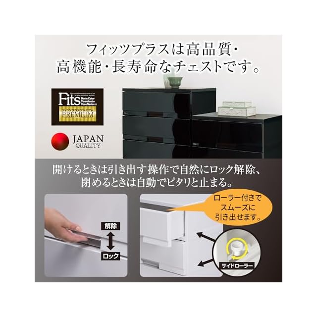 天馬(Tenma) 使いやすさを追求した光沢仕上げのチェスト 日本製 完成品 フィッツプラスプレミアム 3段 特許取得済 引出しロック付きで抜け落ちを防ぐ スムーズな引出し 脚付き 木製天板 インテリアに合うリビングチェスト タンス 収納ケース 衣装ケース プラスチック 【組立不要】 【色 セラミックホワイト】 【サイズ FP6503】 【幅65×奥行41×高さ66cm】