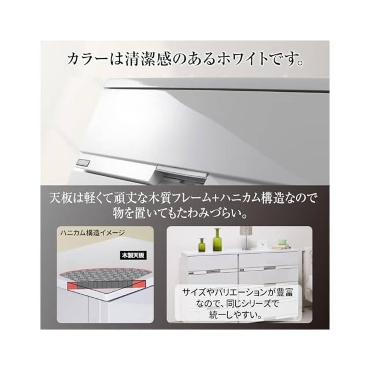 商品名:天馬(Tenma) 使いやすさを追求した光沢仕上げのチェスト 日本製 完成品 フィッツプラスプレミアム 3段 特許取得済 引出しロック付きで抜け落ちを防ぐ スムーズな引出し 脚付き 木製天板 インテリアに合うリビングチェスト タンス 収納ケース 衣装ケース プラスチック 【組立不要】 【色 セラミックホワイト】 【サイズ FP6503】 【幅65×奥行41×高さ66cm】