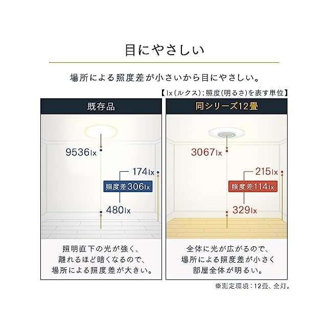おすすめの照らし分け全灯:空間をしっかり照らすあかり。パネル灯:広がりや奥行きを感じさせるあかり。3センター灯:昼はインテリアとして、夜は常夜灯で、活躍。【より自然に見える光】演出性が高いほど、肌や食べ物の色がより美しく、自然に見えます。住宅の屋内照明の場合、Ra80以上が好ましいとされています。