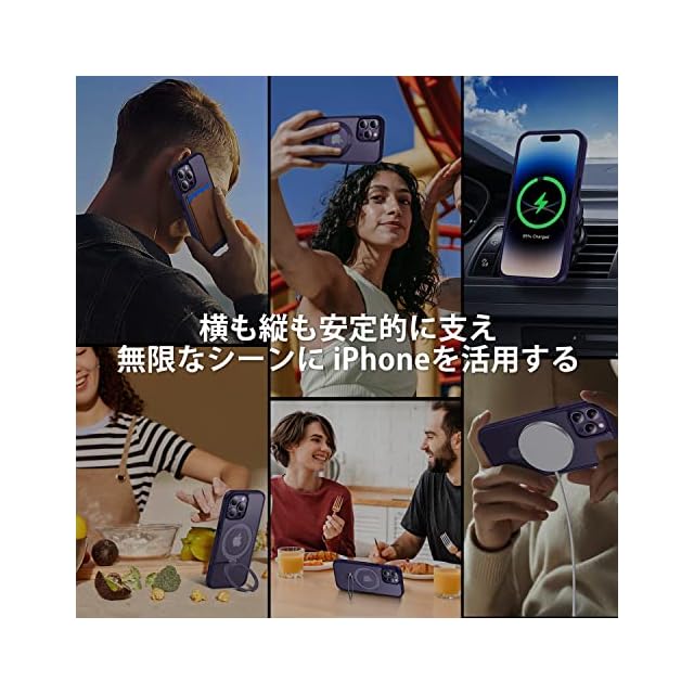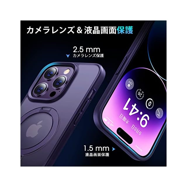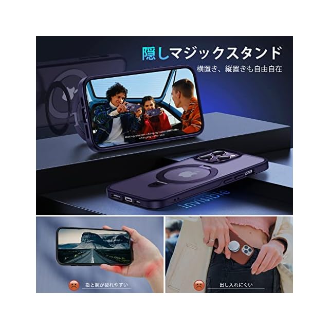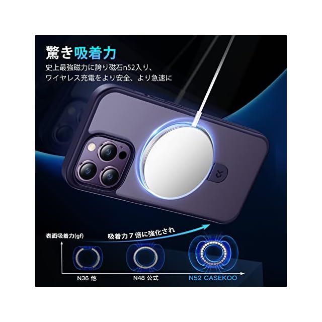 商品名:【8年間の技術結晶!4in1超万能モデル】CASEKOO iPhone14ProMax 用 ケース 隠しスタンド 横縦両立 米軍MIL規格 耐衝撃 MagSafe対応 スマホケース 薄形半透明 マット仕上げ 指紋防止 ストラップホール付き ワイヤレス充電対応 アイホン14pro max 用 ケース 6.7インチ カバー(パープル)