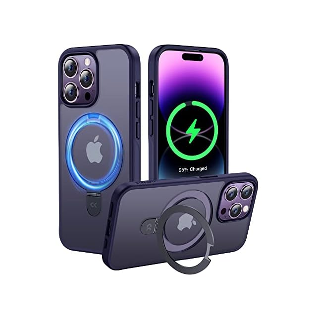 【8年間の技術結晶!4in1超万能モデル】CASEKOO iPhone14ProMax 用 ケース 隠しスタンド 横縦両立 米軍MIL規格 耐衝撃 MagSafe対応 スマホケース 薄形半透明 マット仕上げ 指紋防止 ストラップホール付き ワイヤレス充電対応 アイホン14pro max 用 ケース 6.7インチ カバー(パープル)