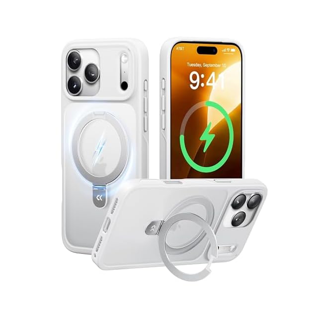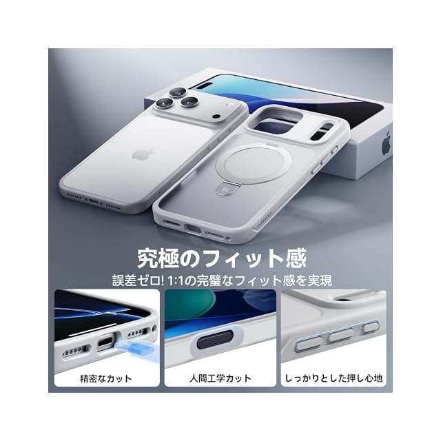 【8年の匠心開発 高耐久スタンド構造】CASEKOO for iPhone 17 Pro ケース【米軍MIL規格 耐衝撃/MagSafe対応】【カメラモジュール強化保護】隠しスタンド 縦横立て対応 25W ワイヤレス充電対応 マット仕上げ 指紋防止 黄変防止 半透明 ストラップホール付き 特許設計「MagicStand」for いphone17pro ケース 6.3(ホワイト)