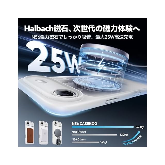 【最大25Wの高速充電&強力な磁力対応】CASEKOOOは独自の非閉合メタルリング設計を採用しており、充電効率の損失を減らし、発熱を抑えます。さらに、Halbachアレイ磁気吸着技術を組み合わせることで、充電中のスマートフォンへの影響を最小限に抑え、最大25Wの高速ワイヤレス充電をほぼエネルギー損失なく実現します。また、業界最強のN56磁石を使用しており、従来の保護ケースに使われる磁石の20倍の吸着力を持ちます。でこぼこの道でも、MagSafe対応の車載ホルダーにしっかりと接続でき、脱落の心配なく安心して使用できます。さらに、両面磁吸設計により、冷蔵庫や壁、キッチンなどの鉄製面にも安定して吸着可能。料理中、運動中、休憩中でも、両手を自由に使いながら動画視聴や通話を楽しめます 対応モデル:for iPhone Air ケース