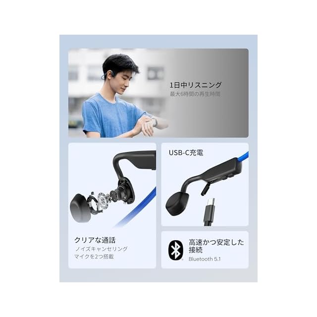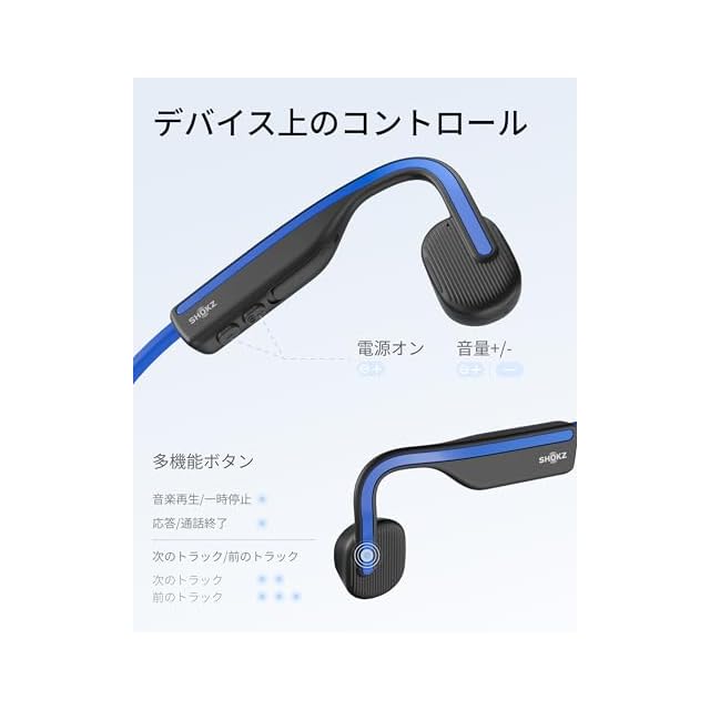 商品名:Bluetooth 5.1 SHOKZ OpenMove 骨伝導イヤホン 公式ストア正規品 ワイヤレスイヤホン Zoomなどリモート会議 テレワーク 在宅勤務 6時間使用可能 環境音聞き取り 2年 ブルー