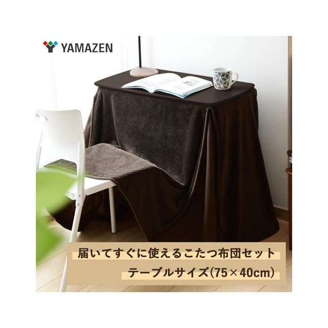 [山善] こたつ テーブル 専用布団セット 幅75×奥行40×高さ55~65cm 高さ3段階調節 パソコンデスク 中間入切スイッチ ダークブラウン GDX-F752(DB)