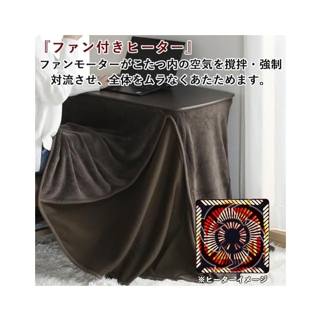 【ファン付きヒーター】体を芯からポカポカとあたためてくれる遠赤外線ヒーター仕様。さらにファン付きなので、こたつ内の空気を撹拌・強制対流させることにより、全体がムラなくあたたまります。