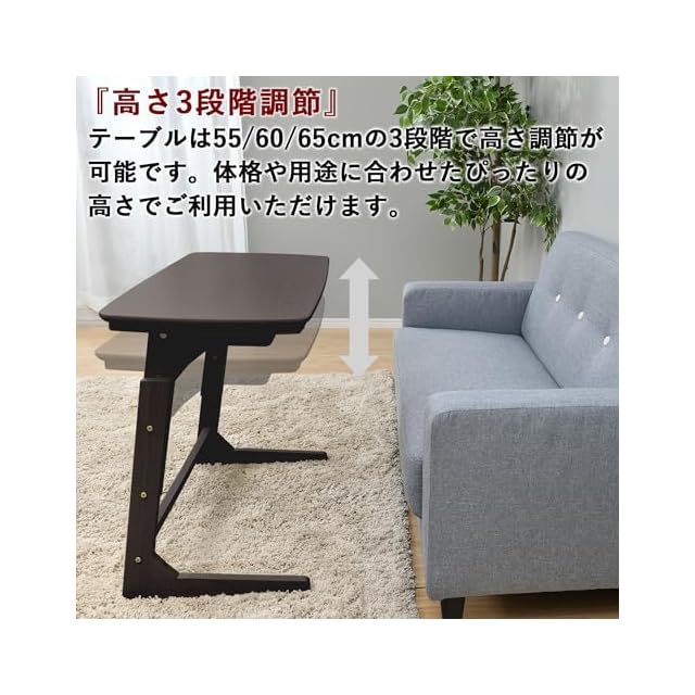 【高さ調節】テーブルの高さは55/60/65cmの3段階で調節が可能です。体格や用途に合わせたぴったりの高さでご利用いただけます。