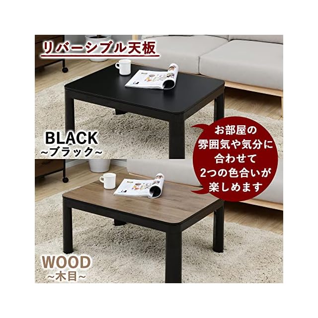 商品名:[山善] カジュアル こたつ テーブル 幅80cm×奥行60cm 長方形 一人暮らし 折りたたみ リバーシブル天板 中間入切スイッチ 温度調節無段階 天板ラウンド加工 ブラック NCF-80602(BK/BR)