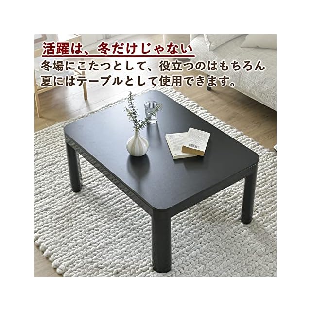 【オールシーズン活躍】一人暮らしの方にオススメなコンパクトサイズのこたつテーブル。寒い冬には足もとをぬくぬく暖めてくれ、夏場にはテーブルとして活躍します。シンプルなデザインなので、どんなお部屋にも馴染みます。