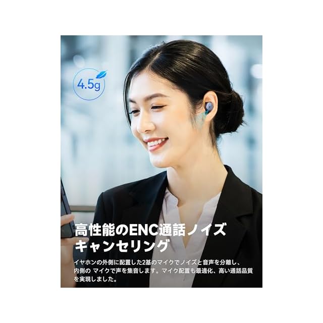 【6つのマイクによるCVC通話ノイズキャンセリング、クリアな通話品質】各イヤホンにはフィードフォワード、フィードバック、通話用の3つのマイクアレイが内蔵されており、CVCノイズキャンセリングアルゴリズムと組み合わせることで、ノイズを除去し、クリアな人の声を保ちます。騒々しい環境でも、周囲のノイズと人の声を正確に分離して、クリアな通話が可能です。【Bluetooth 5.3の安定した転送】次世代の高通Bluetooth 5.3チップは、転送アルゴリズムを最適化し、転送性能と接続の安定性が向上しました。