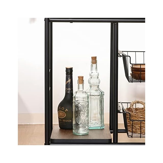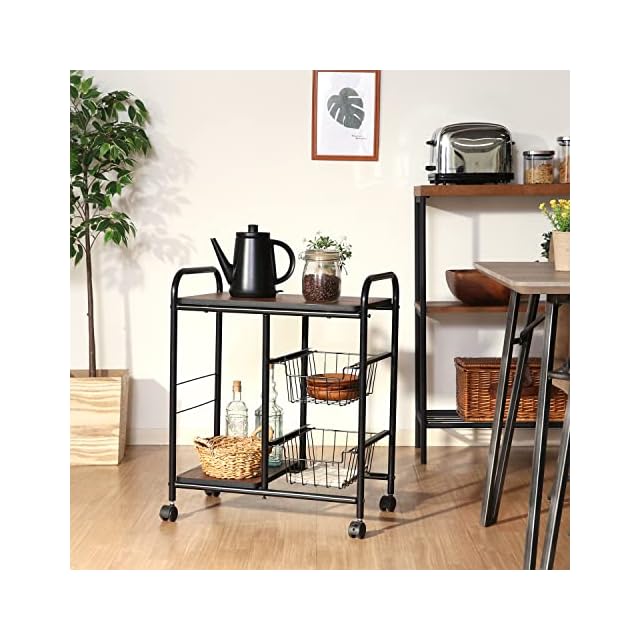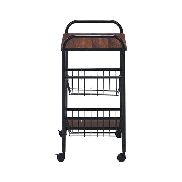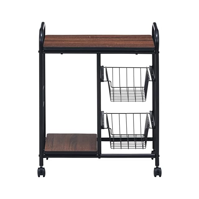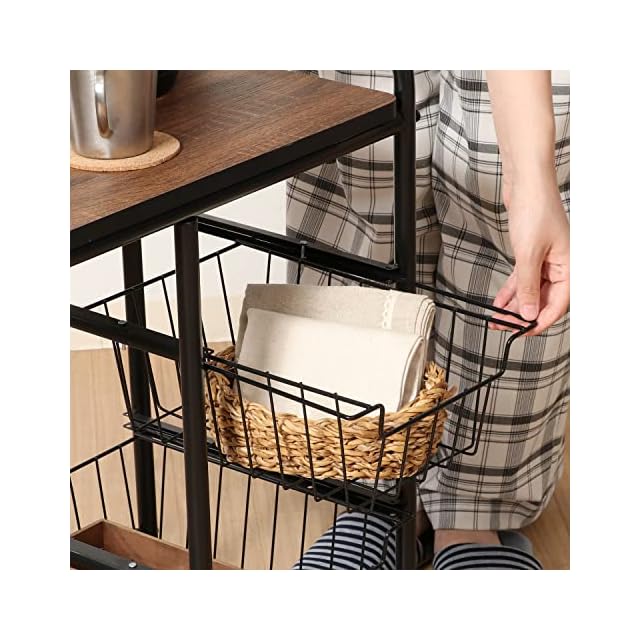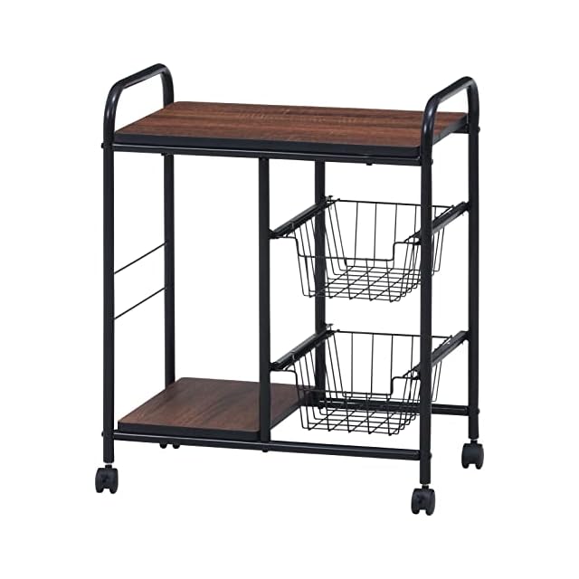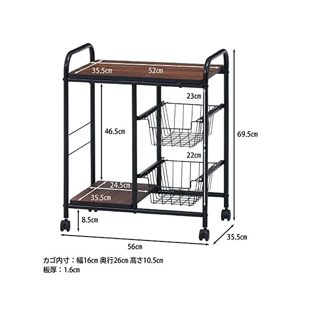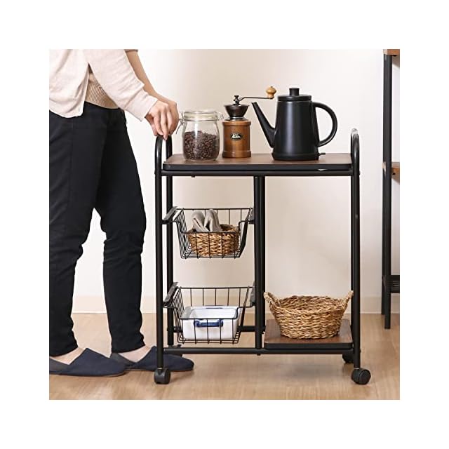 商品名:不二貿易 キッチンワゴン キャスター付き キッチンラック レンジ台 一人暮らし スライド棚 引き出し収納 バスケット付き 幅56×奥行35.5×高さ69.5cm ブラック ブラウン 14639