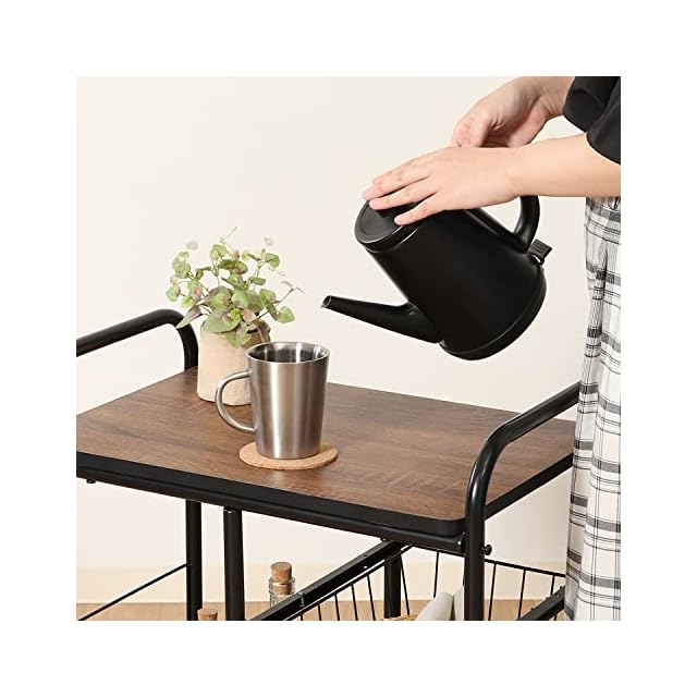 不二貿易 キッチンワゴン キャスター付き キッチンラック レンジ台 一人暮らし スライド棚 引き出し収納 バスケット付き 幅56×奥行35.5×高さ69.5cm ブラック ブラウン 14639