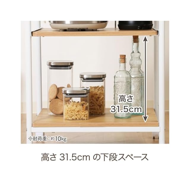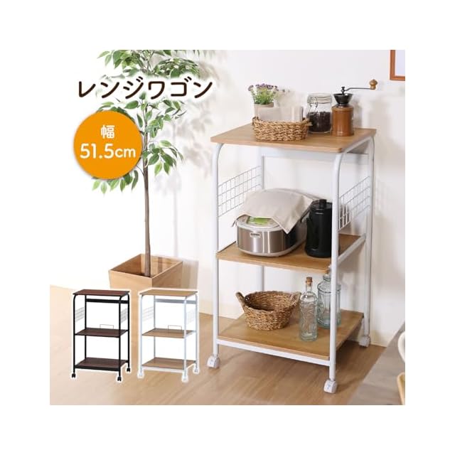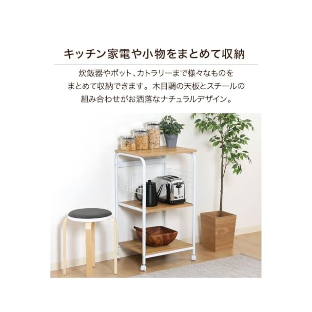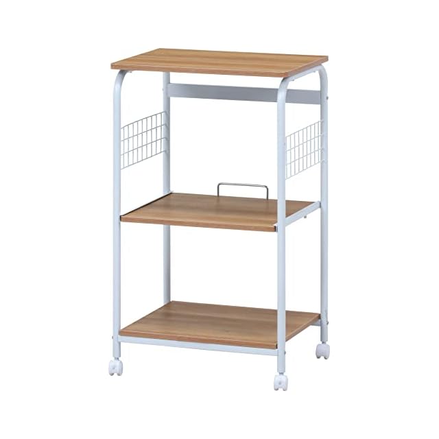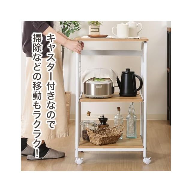 不二貿易 レンジ台 キッチンラック 幅51.5×41×高さ89.5cm ホワイト ナチュラル スライド棚 収納 レンジワゴン キャスター付き 14640