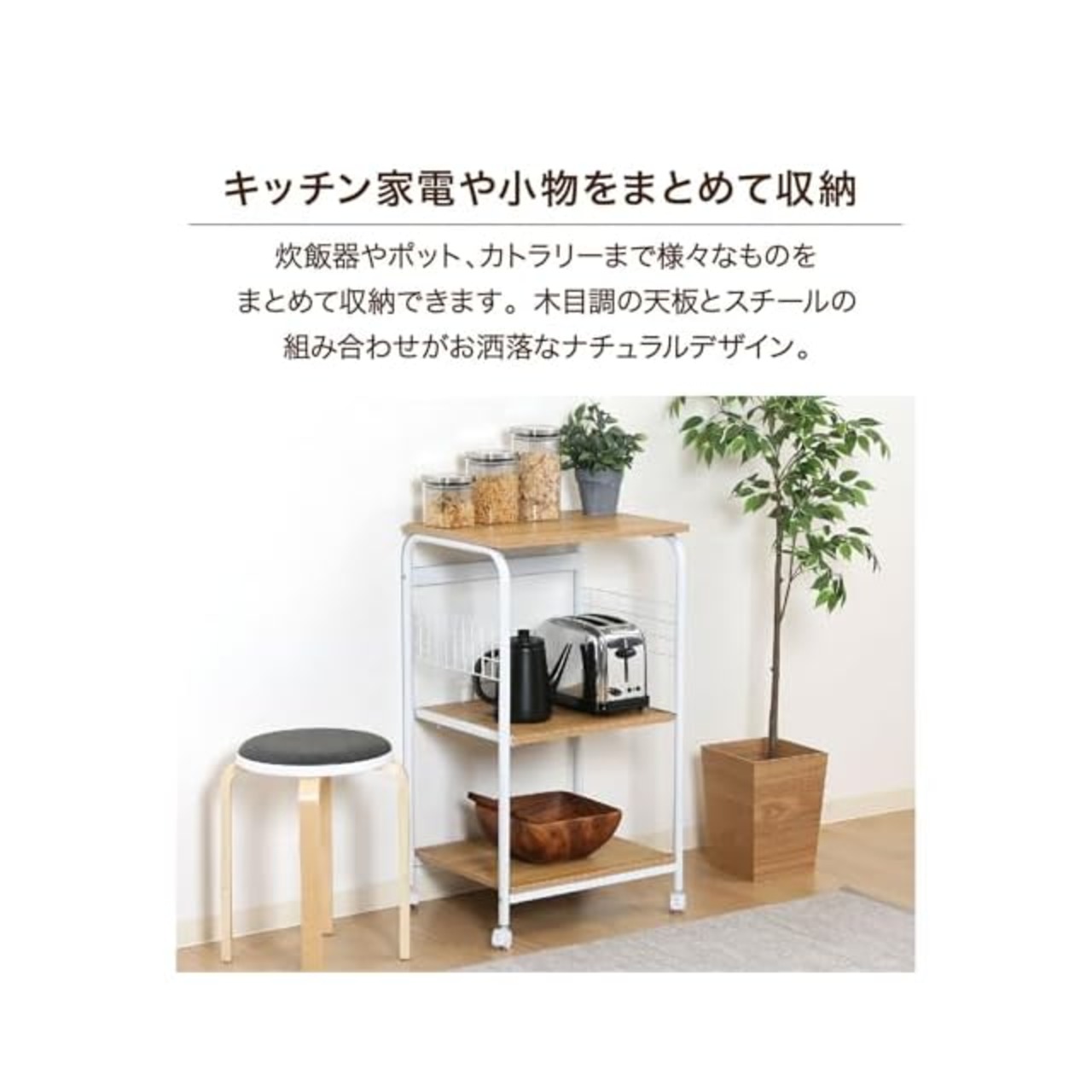 レンジや炊飯器の収納に便利なキッチンワゴン