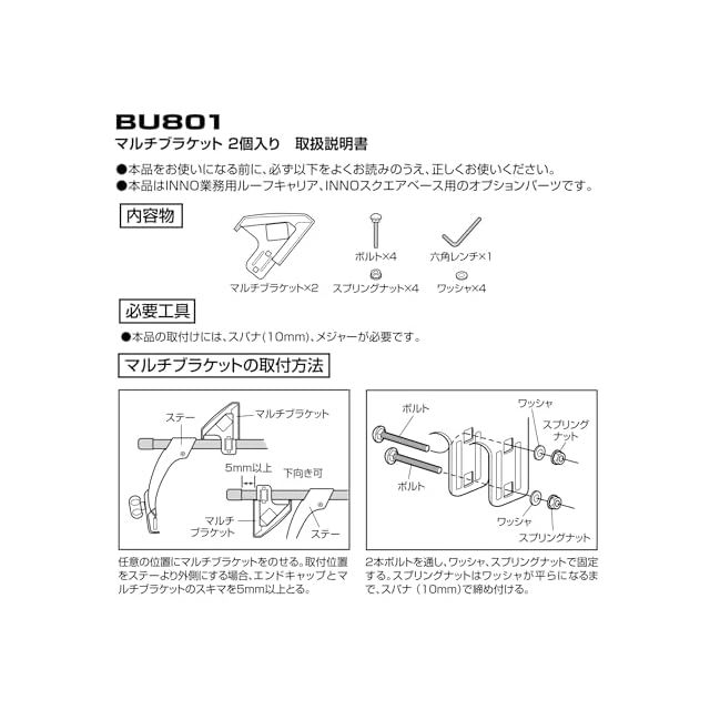 カーメイト(Carmate) ルーフキャリア INNO マルチブラケット 2個入り おすすめ車種 ハイエース キャラバン エブリイ ハイゼット イノー 業務用ルーフキャリア INNO製 スクエアベース 取り付け 業務用 ビジネスキャリア イノープロ BU801
