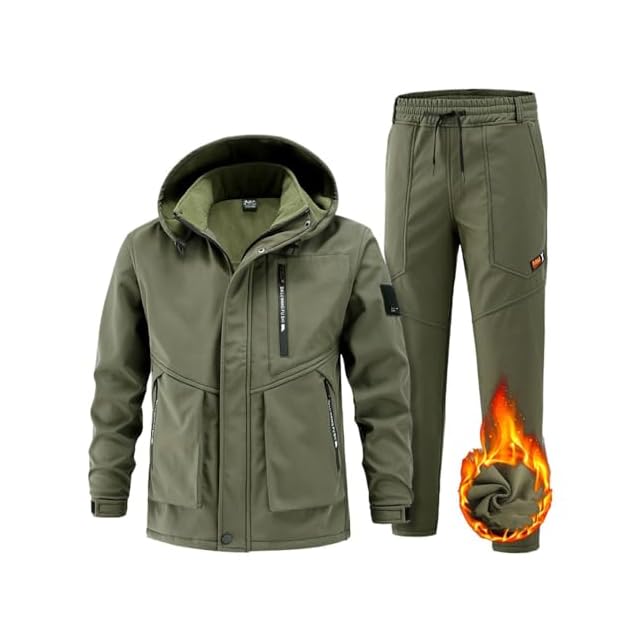 [Inkpoo] 登山ジャケット 冬服 コート メンズ 防寒 防風 防撥水 上下セット ズボン 裏起毛 ウィンドブレーカー メンズ マウンテンパーカー アウトドアウェア アノラック スキー 春秋冬 Green XL