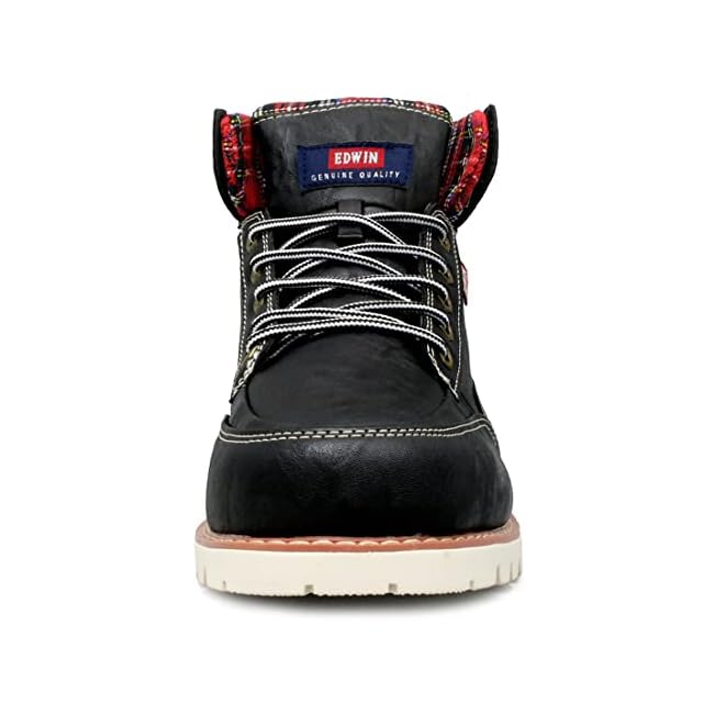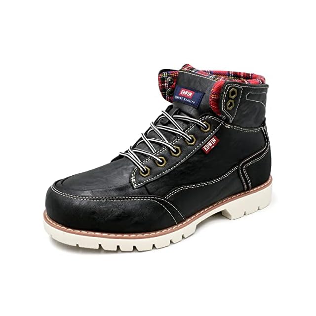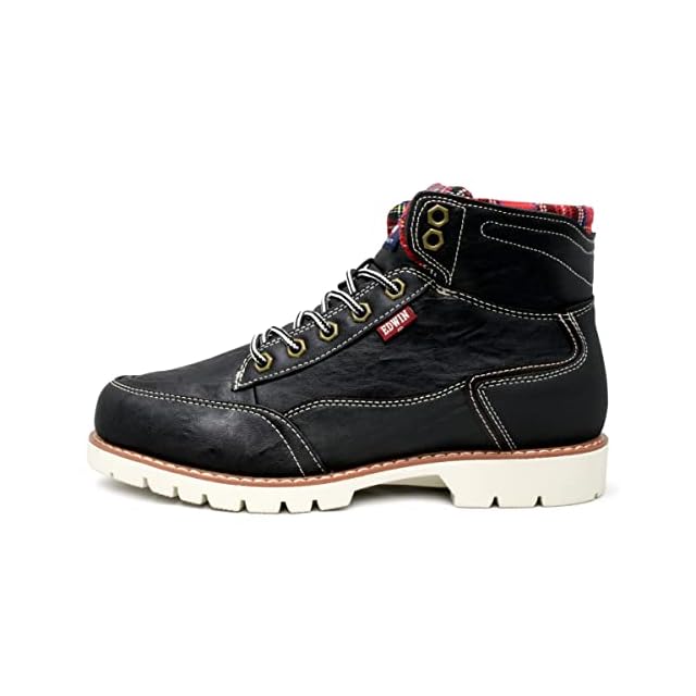 [エドウィン] 防水 ブーツ メンズ 軽量 スニーカーブーツ ハイカット カジュアルブーツ PUレザー 革靴 幅広 上質素材 おしゃれ 紐靴 EDM8500 ブラック 24.5