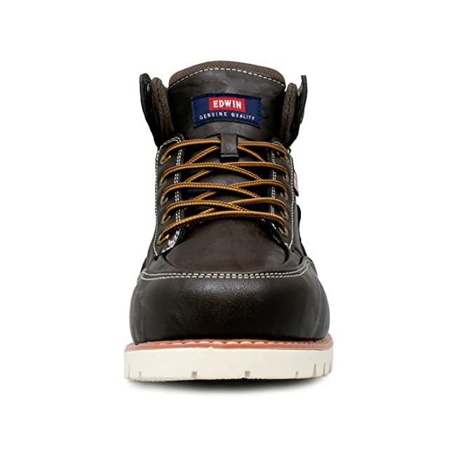 [エドウィン] 防水 ブーツ メンズ 軽量 スニーカーブーツ ハイカット カジュアルブーツ PUレザー 革靴 幅広 上質素材 おしゃれ 紐靴 EDM8500 ダークブラウン 25.0