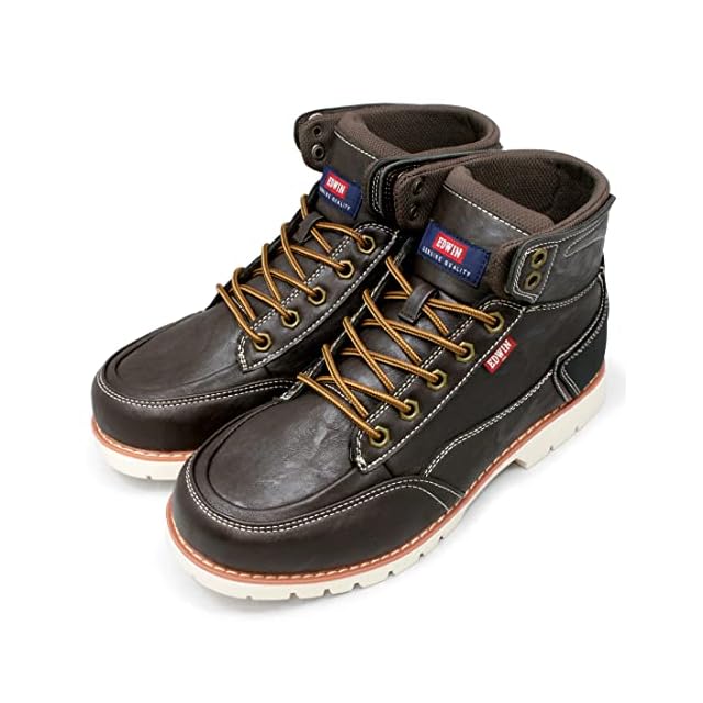 商品名:[エドウィン] 防水 ブーツ メンズ 軽量 スニーカーブーツ ハイカット カジュアルブーツ PUレザー 革靴 幅広 上質素材 おしゃれ 紐靴 EDM8500 ダークブラウン 25.5