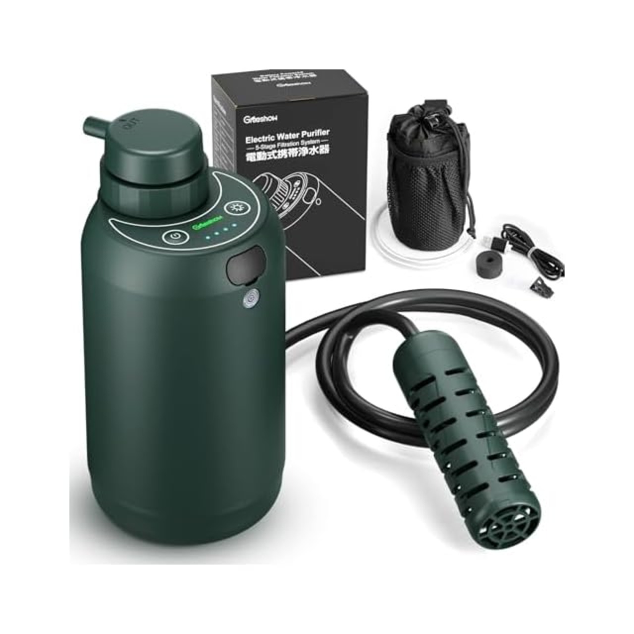 商品名:防災協会認定 Greeshow 携帯浄水器 濾過器 電動式 防災士監修 アウトドア 災害用 サバイバル 登山 キャンプ 飲み水浄化 防災グッズ 軽量 LEDライト搭載 日本正規品 GS-2801 グリーン