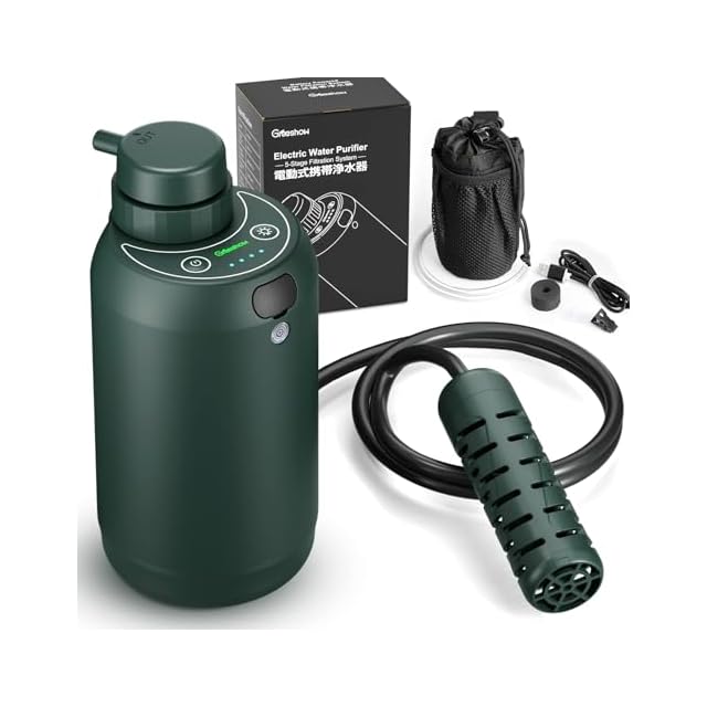 防災協会認定 Greeshow 携帯浄水器 濾過器 電動式 防災士監修 アウトドア 災害用 サバイバル 登山 キャンプ 飲み水浄化 防災グッズ 軽量 LEDライト搭載 日本正規品 GS-2801 グリーン