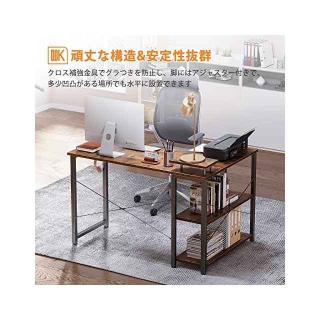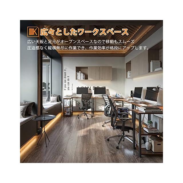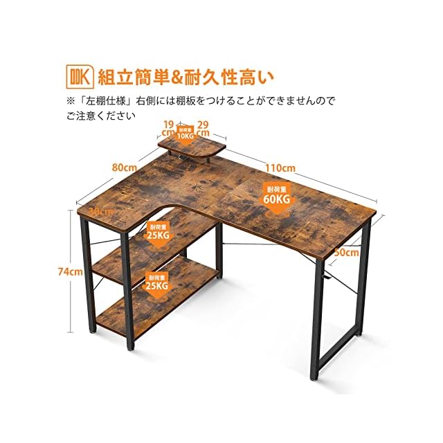 商品名:ODK パソコンデスク L字 ゲーミングデスク 幅110 L字デスク pcデスク desk 机 ラック付き 収納 オフィスデスク 在宅勤務 組立簡単 書斎 ビンテージ 左棚