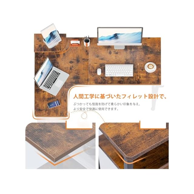 【組立簡単&耐久性高い】分かりやすい説明書あり、女性にも組立簡単です。汚れに強く、高強度のメラミン化粧板を採用し、キズや熱・水分に強く、長持ちしやすいコーナーデスクです。机の天板はフィレット設計で、安全性が高く、衝撃時に怪我を防げます。