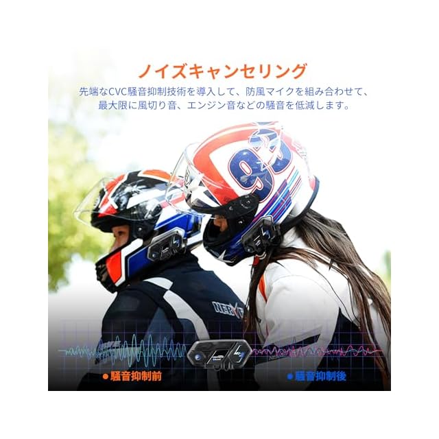 【三重ノイズキャンセリング】優れたCVC&ENC騒音抑制技術を導入して、防風マイクにより通話エコーを除去し、エンジン騒音や風切音等のノイズを低減します。さらに付属の40mm大出力スピーカーにより高速走行中でも問題なく会話での音はしっかり聞こえます。※※マイクの取り付け位置が悪いと風きり音などのノイズが入りやすいですが、位置を変えてみるとノイズが入らない可能です。【音楽共有】夫婦、恋人とか2人のライダーが走行中に一緒に同じなお気に入りの音楽も楽しめるので、タンデム走行時などにおすすめの商品です(※※会話しながら音楽共有不可)【日本語音声案内】日本語オペレーションシステムにより案内音声を日本語で行い、英語があまり上手ではないお客様にとっても、設定も操作も簡単になります。