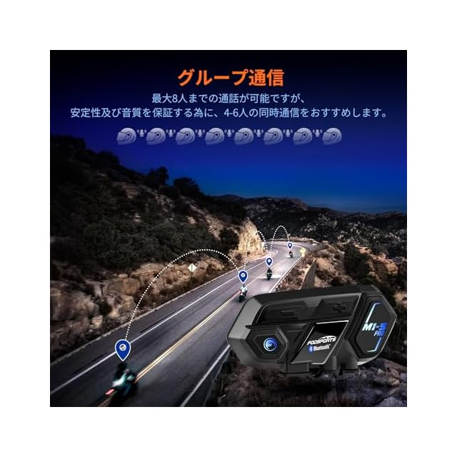 【最大8人同時通話】通勤やソロツーリング又は3~4台での少人数接続だけでなく、8人までの同時通話をサポートしますが、音質及び接続安定性の為に、4-6人の同時通信を推奨します。【ワンタッチ全部接続】M1-S Proバイク用インカムは、複雑な接続手順が不要で、ワンボタンでペアリング設定をするだけで、自動的に同機種を接続することができます。【通信自動復帰】もしライダーはグループを離れる場合、障害物や外部電波により通信が切れる場合、短時間で通話可能範囲内に入れば自動的に接続されます。【通信距離最大2000m】一切障害物がない高速道路でも、見通しのいい市街地でも、いんかむ2台同士の最大会話距離は約500mになります。グループ直線距離は最大2000mに達します。※※実際の電波が届く距離は、道路環境や加速の仕方により大幅に差異が生じる場合があります。