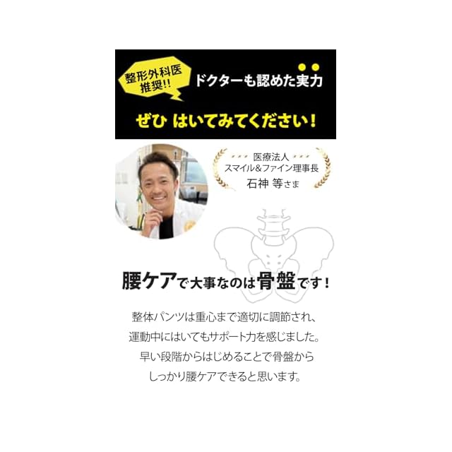 腰や骨盤まわりにお悩みの方へ、施術歴28年の柔道整復師・鍼灸師・一般社団法人日本施術マイスター養成協会代表理事の小林篤史が直接開発。コルセットやサポートベルトから進化した特許取得のはく腰サポーター「整体パンツ」。使い方は通常のパンツと同じようにただ穿くだけ。骨盤が立つ・支えられる状態をご実感ください。通気性に優れており、デスクワークや力仕事、ゴルフなどのスポーツ時にも活躍。つらい中腰や姿勢の補正に快適性をもたらします。