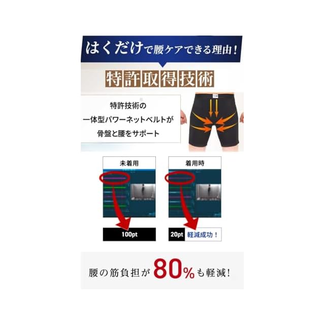商品名:[はくだけ整体] 整体パンツNEW ZERO 特許取得 はく 腰 サポーター/メンズ 骨盤ベルト/ゴルフ に最適/就寝時可 男性用骨盤パンツ 吸汗 速乾 洗濯機可 (S~3L) BODY SPROUT ボディスプラウト