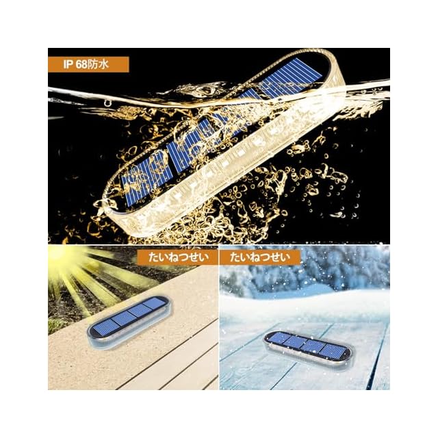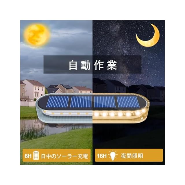 ソーラーライト 屋外はIP68の最高の防水等級に達し、錆びやすい部品はありません。 内蔵800mAhバッテリー容量、完全な日光の下で日中6時間以上を充電し、自動的にライトの作用の下で夜間点灯 センサー搭载、照明は12〜15Hまですることができます。 30ランプビーズ、360°照明することができ、ランプの周囲と足を照らすのに十分な暖かく明るい。 電源配線なし、簡単にインストールするには、装飾的なパティオの照明に最適な任意の場所に配置することができます。