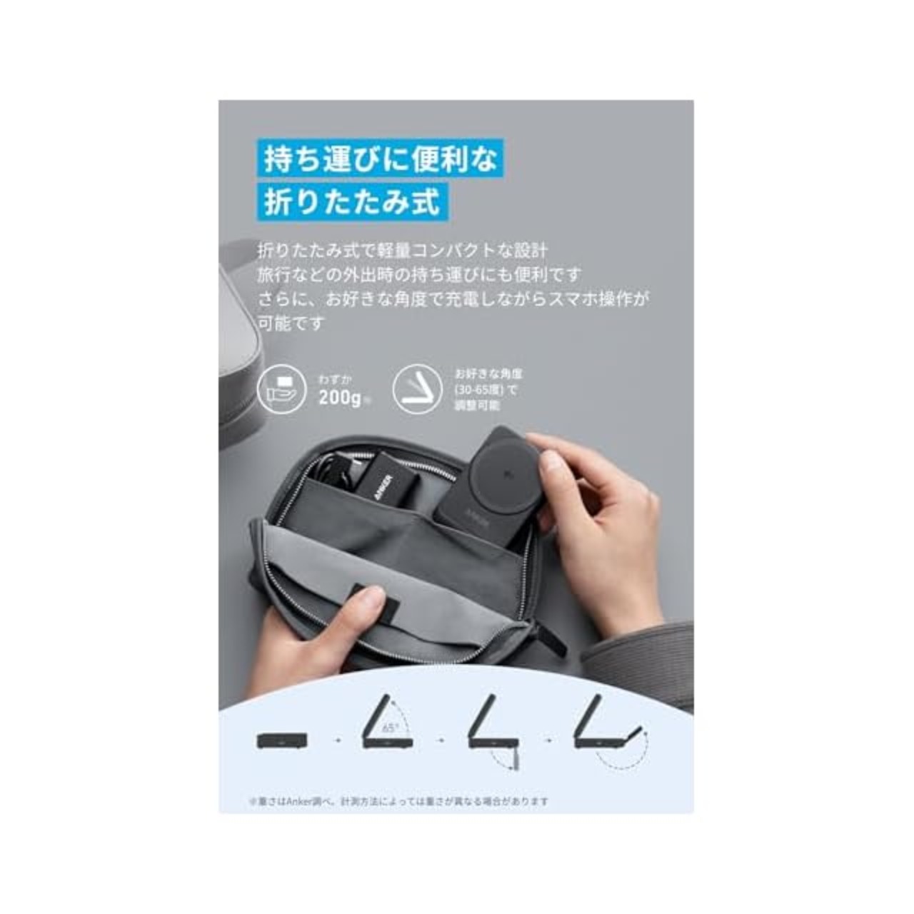 持ち運びに便利な折りたたみ式:折りたたみ式で軽量コンパクトな設計 旅行などの外出時の持ち運びにも便利です。さらに、お好きな角度で充電しながらスマホ操作が可能です。