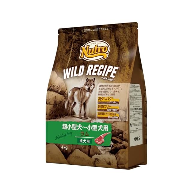 商品名:Nutro ワイルドレシピ 超小型犬~小型犬用 グレインフリー 成犬用 ラム 4kg ドライフード 総合栄養食 ドッグフード 犬 穀物フリー 香料・着色料 無添加 ニュートロ