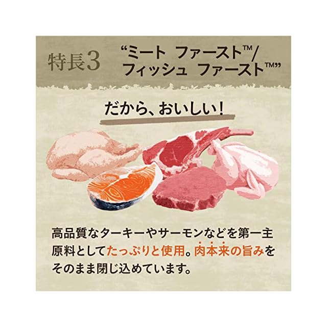 高品質なターキーやサーモンなどを第一主原料としてたっぷりと使用。肉本来の旨みをそのまま閉じ込めています。