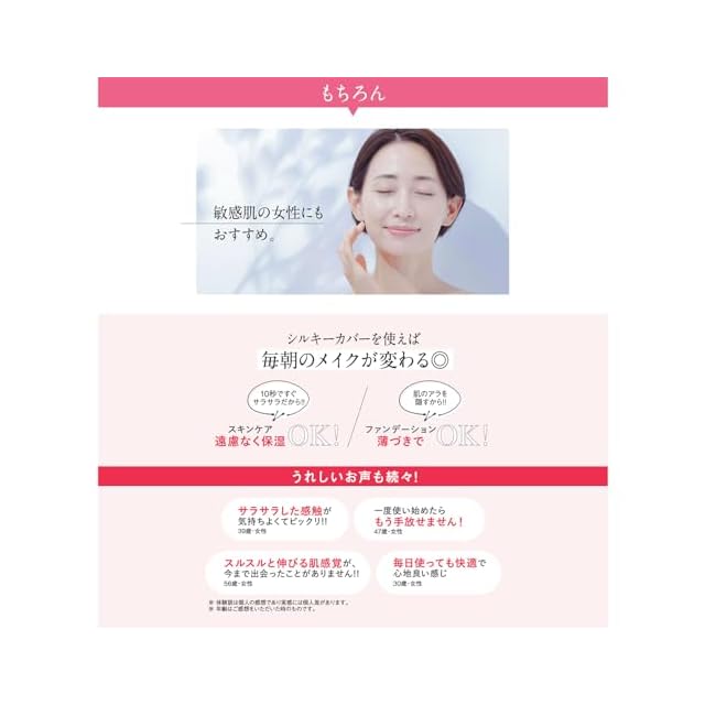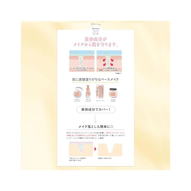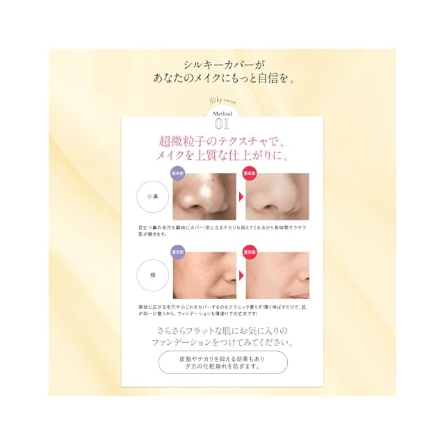 キチンキトサンをはじめとした微粒子成分が肌の凹凸にピタッと密着するため、厚塗り感がなくカバーした部分はまるで本当の自分の肌のように馴染み、一枚ベールをかけたようなすっぴん風シルク肌が体感できます。